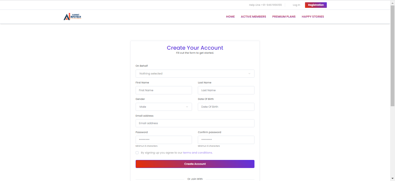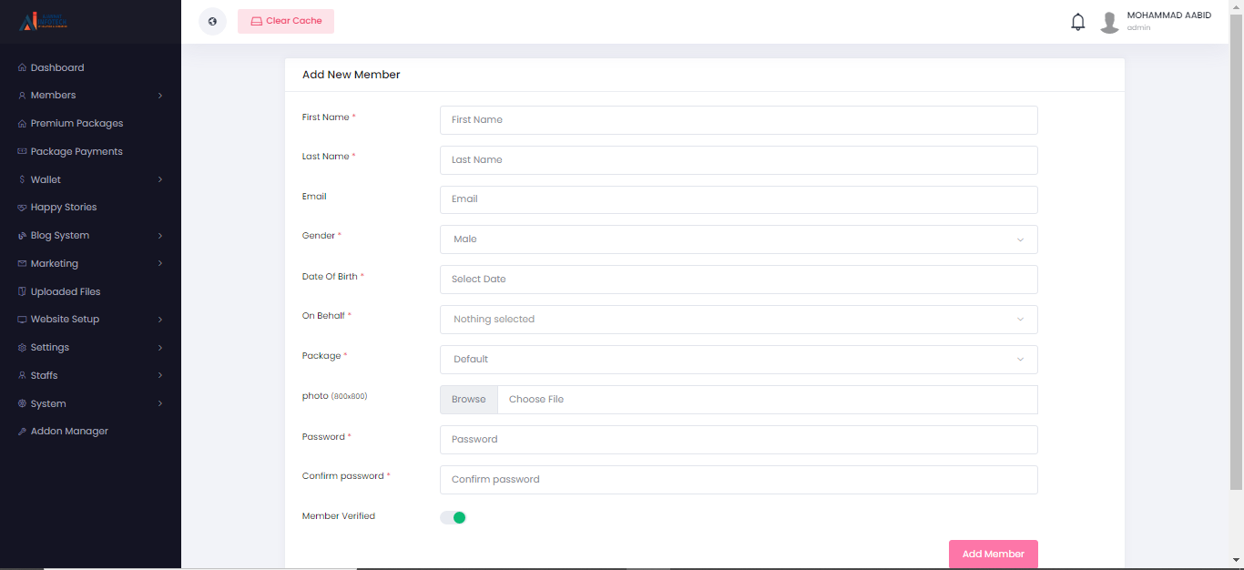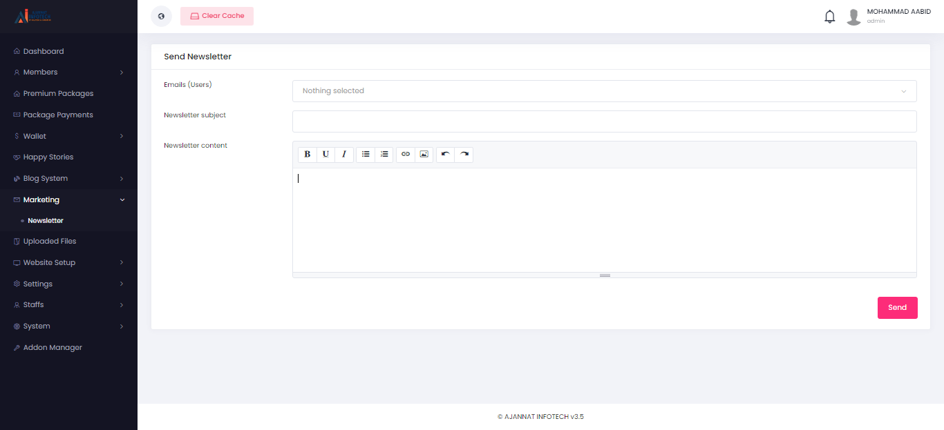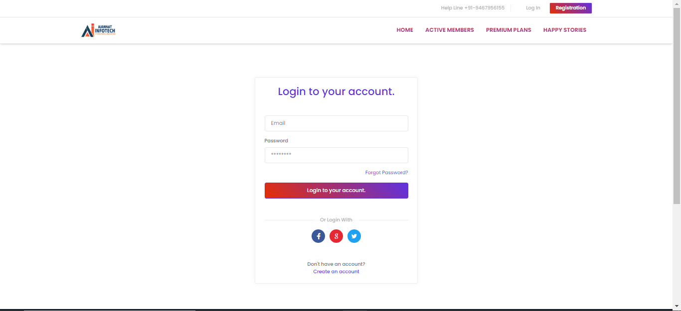 ● After creating an email account, go to Active matrimonial admin Dashboard ->