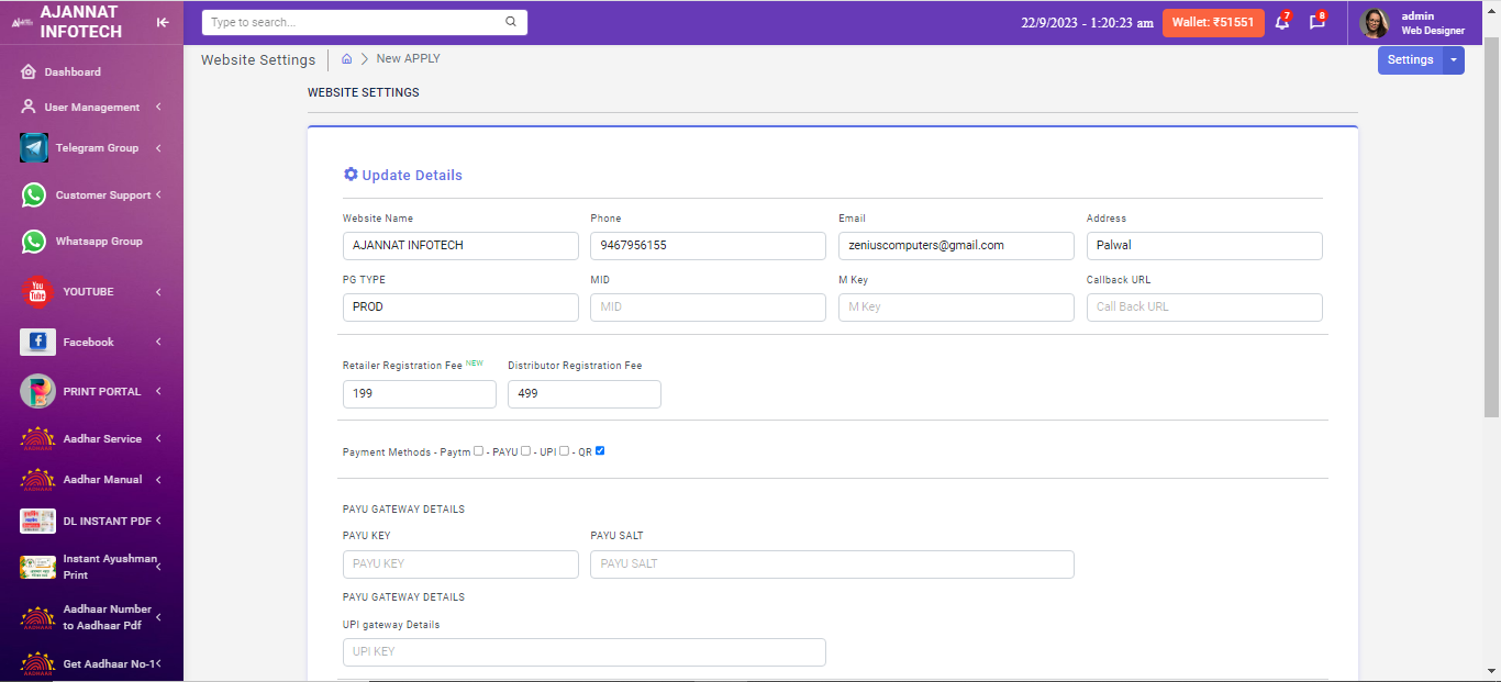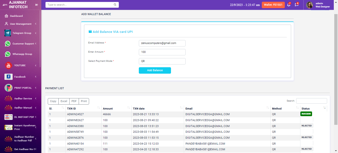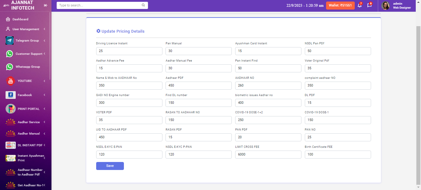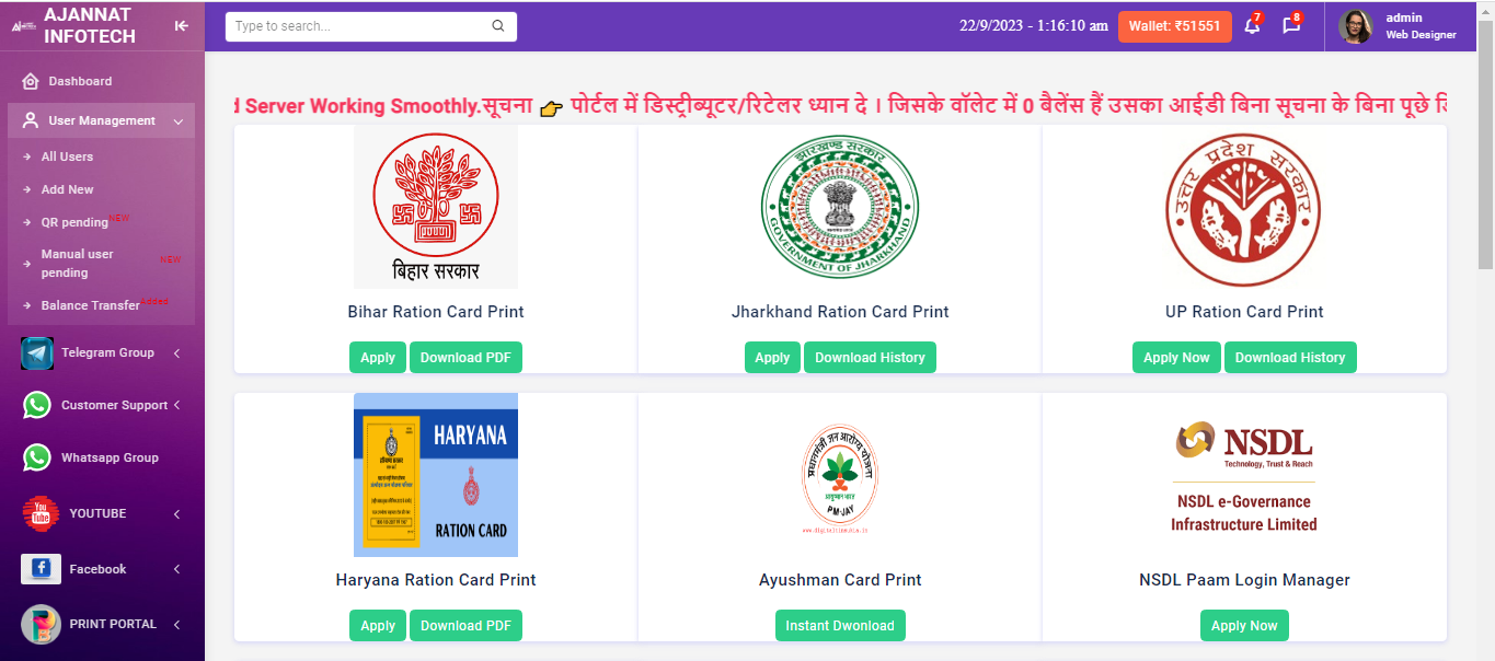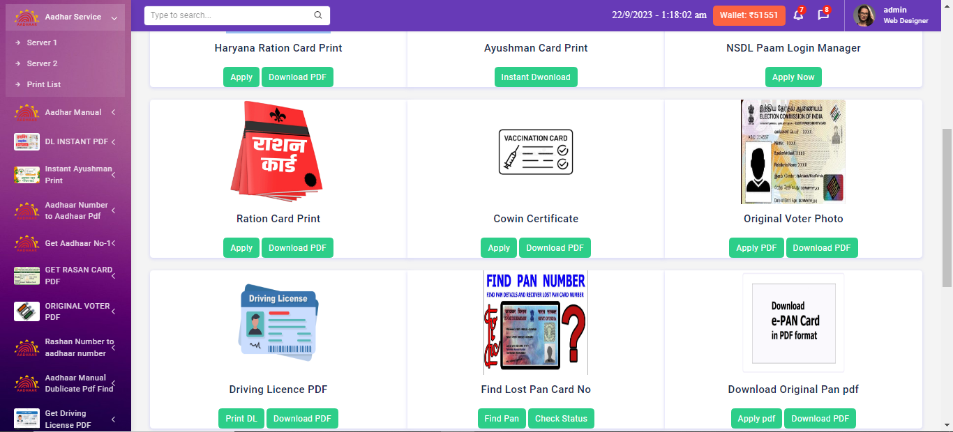 Aadhaar Print Advance Portal Pan Ayushman DL Votor Print Portal Source Code Advance Full AJANNAT INFOTECH PVT LTD